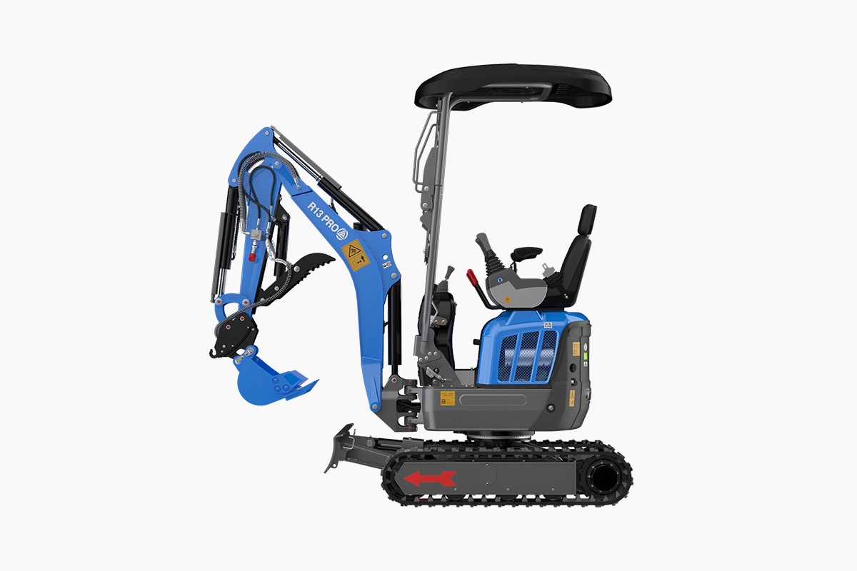 Ausgestattet mit einem zuverlässigen Kubota-Dieselmotor überzeugt der R13 PRO durch ruhigen Lauf, geringen Verbrauch und hohe Langlebigkeit. Dank seiner Grabtiefe von 2,10 Metern und einem Arbeitsgewicht von 1.300 kg meistert er auch anspruchsvolle Aufgaben mühelos.