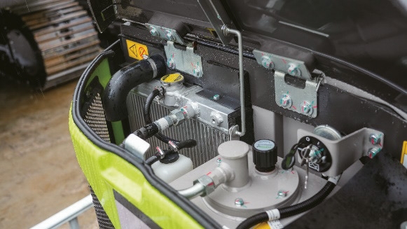 Ein Tritt wurde installiert, damit der Fahrer bequem in die Kabine einsteigen kann.