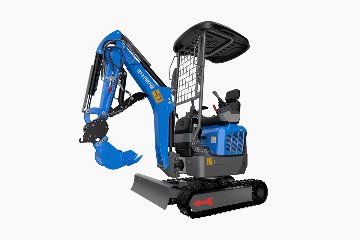 Ausgestattet mit einem zuverlässigen Kubota-Dieselmotor überzeugt der R13 PRO durch ruhigen Lauf, geringen Verbrauch und hohe Langlebigkeit. Dank seiner Grabtiefe von 2,10 Metern und einem Arbeitsgewicht von 1.300 kg meistert er auch anspruchsvolle Aufgaben mühelos.