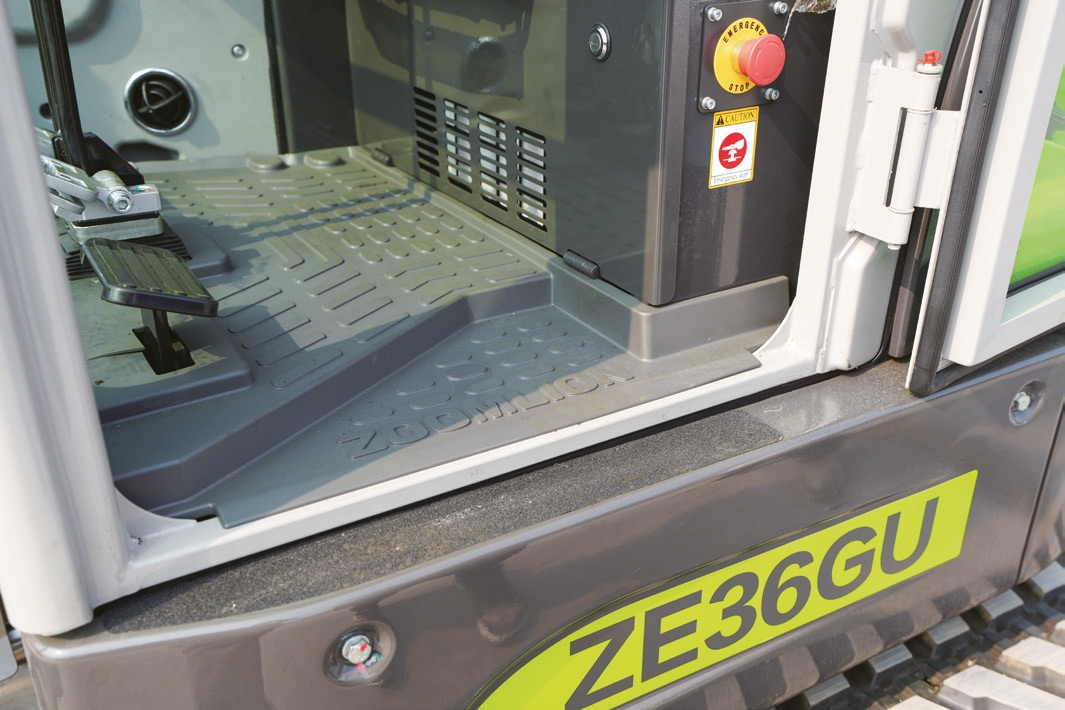 Es gibt großzügigen Beinraum, sodass die Bedi-enung nicht durch beengte Platzverhältnisse eingeschränkt wird. Der Eingang ist ebenfalls großzügig, sodass die Fahrer problemlos ein- und aussteigen können. Der Raum in diesem Mini-Bag-ger ist alles andere als beengt.
